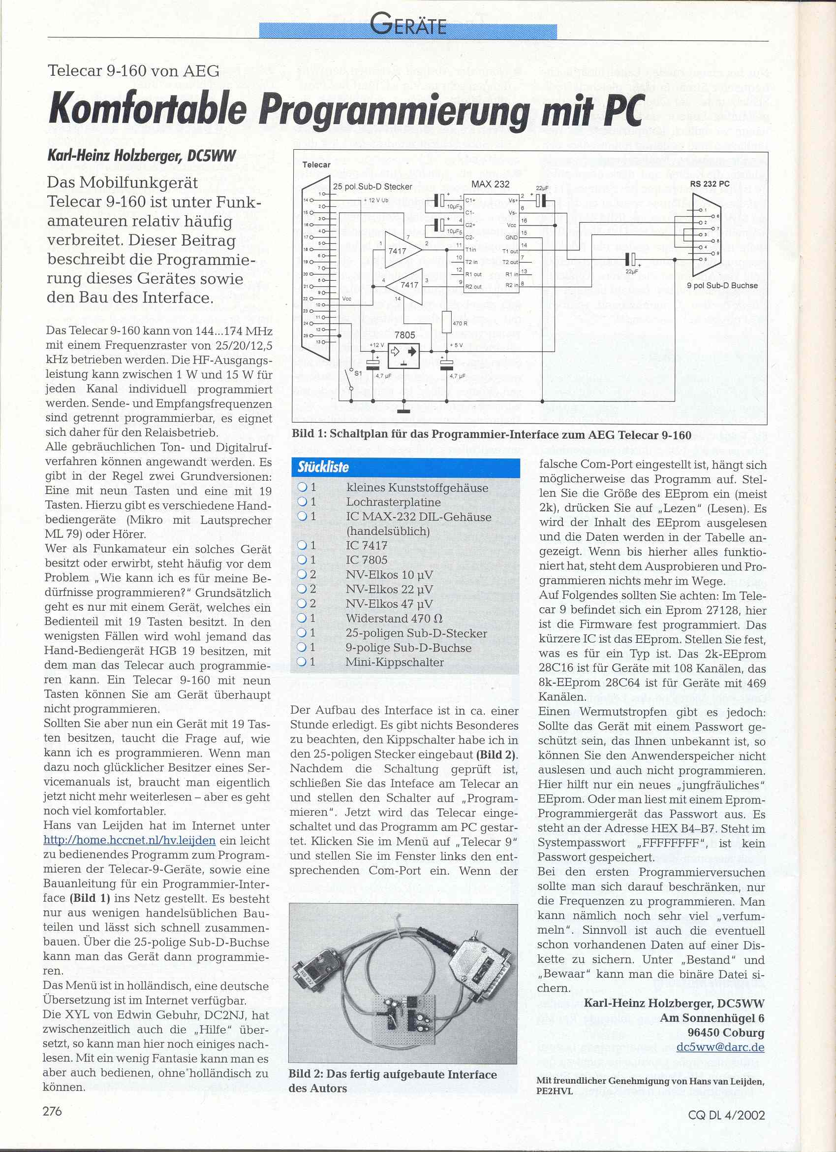 DC5WW has designed an interface and published it in CQDL 04/2002. The DARC kindly accepted me to place a scan of the article on my website. Thanks to them for their ham spirit!